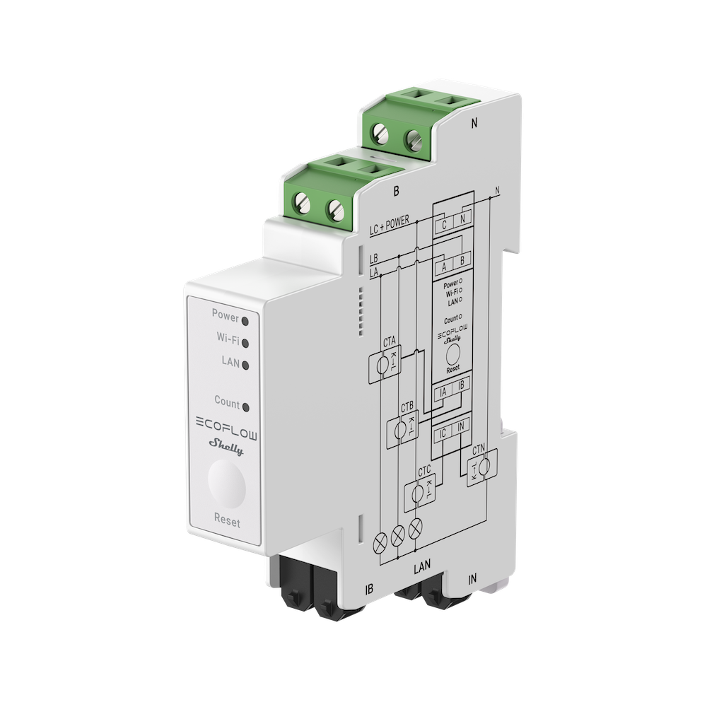 The EcoFlow × Shelly Smart Meter integrates Shelly’s advanced three-phase energy measurement technology into your EcoFlow Stream ecosystem. It provides accurate, real-time tracking of electricity usage and generation, giving you full insight into your home’s power flows and helping optimise solar energy use.