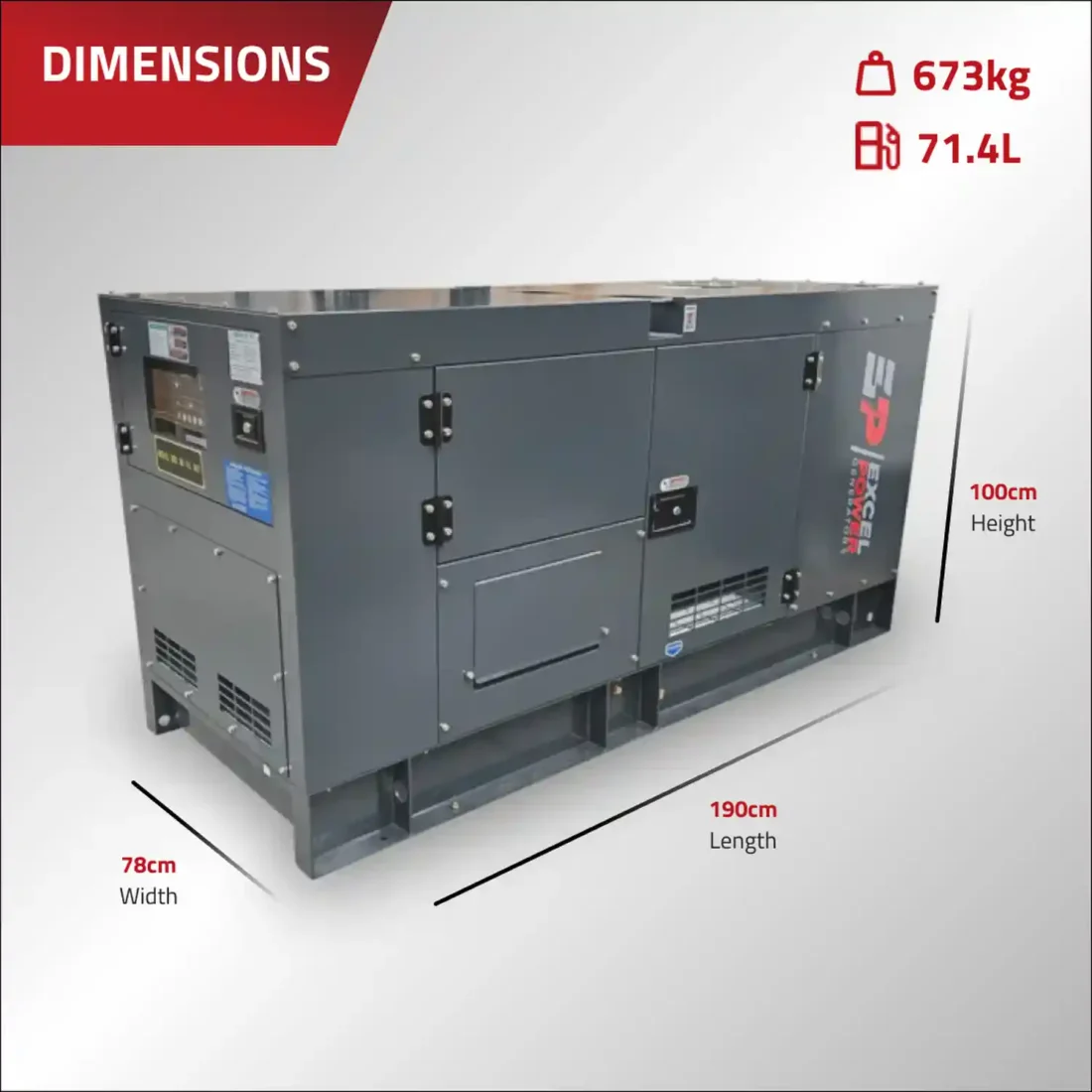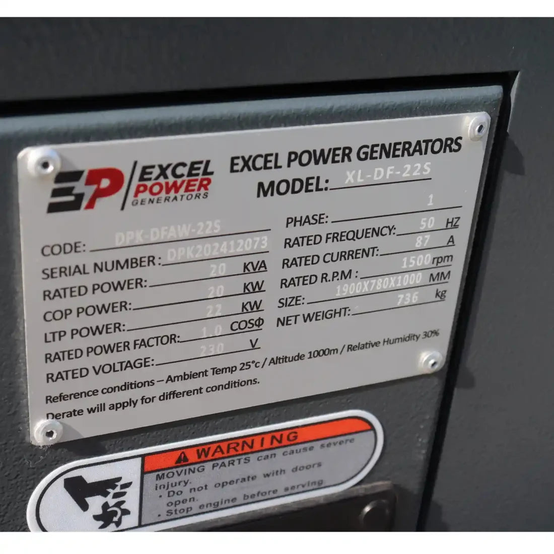 - Excel Power XL-DFAW-22S diesel generator in acoustic canopy