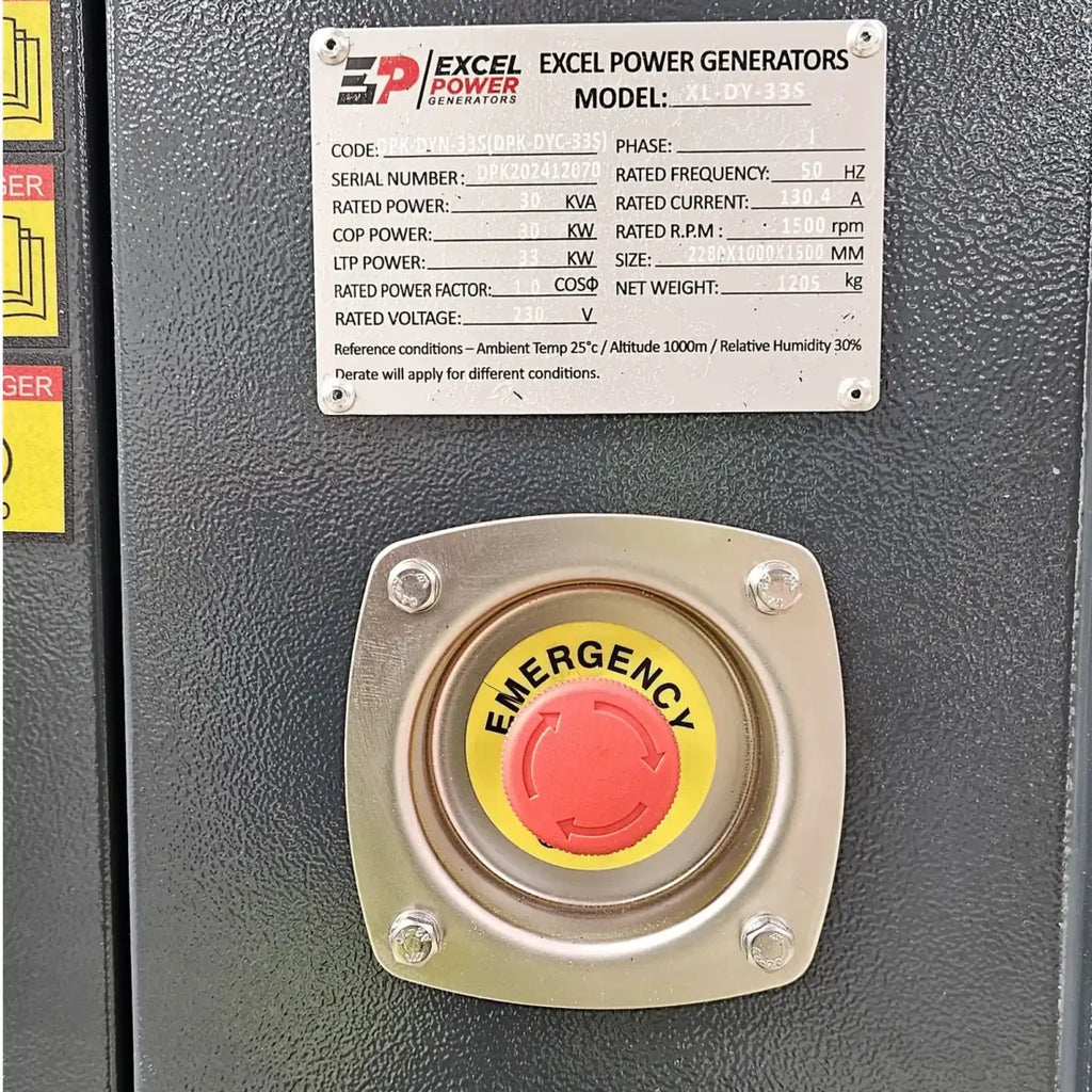 • Excel Power XL-DYN-33S diesel generator in acoustic canopy