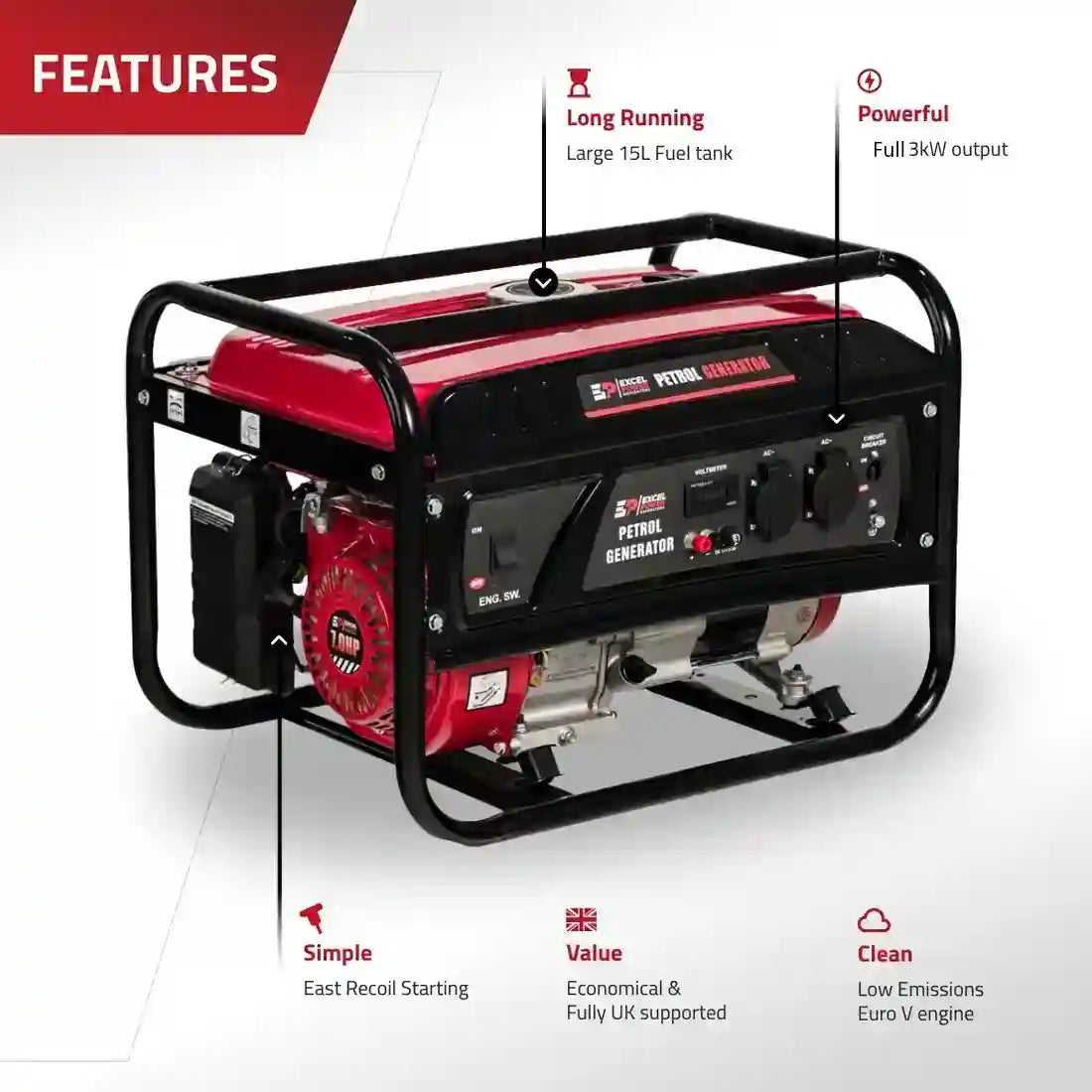 Excel Power XL3000E 3 kW Open-Frame Petrol Generator
