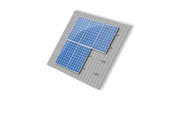 Mounting Kits for Double Row of Solar Panels in Portrait for Corrugated Metal Roofs